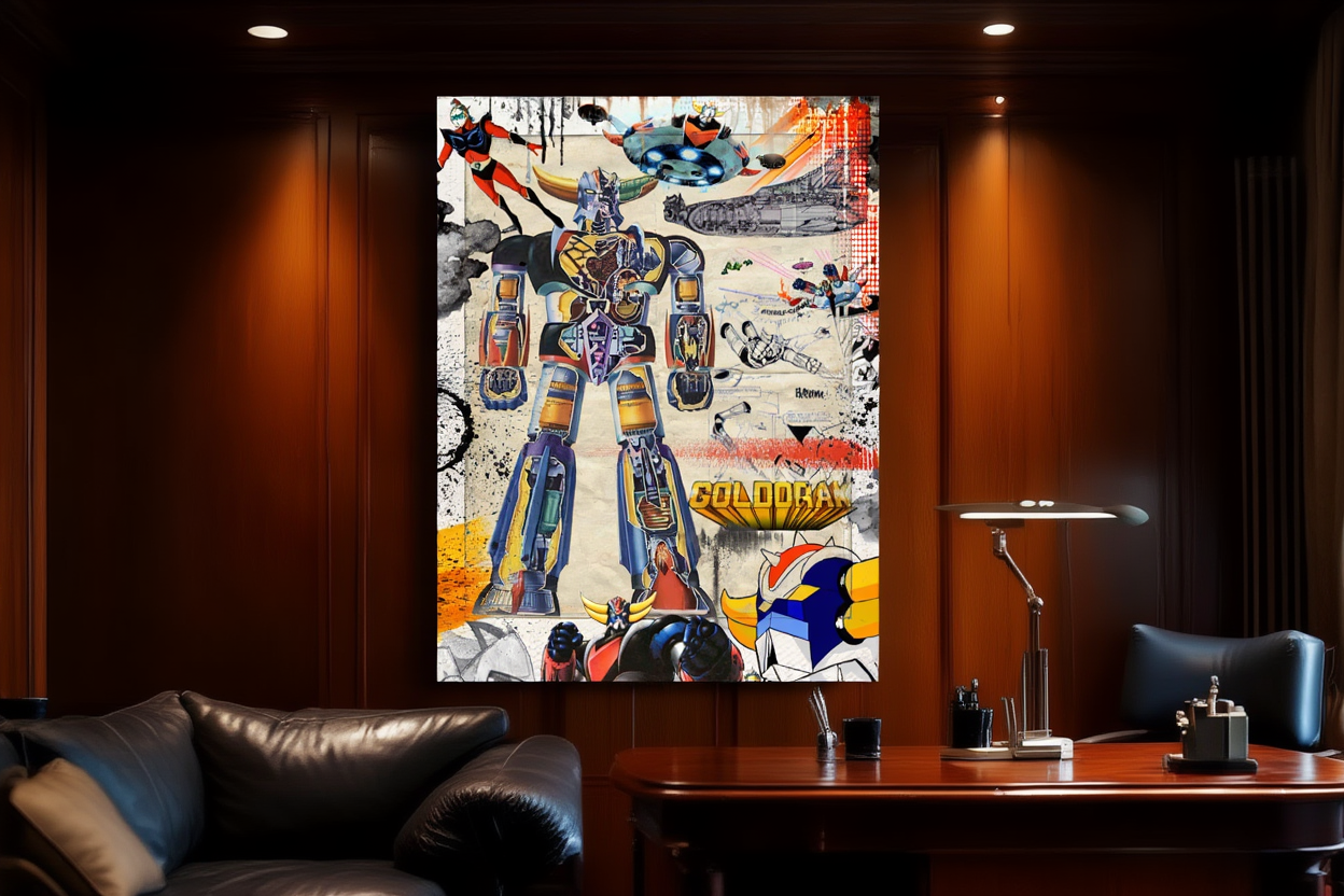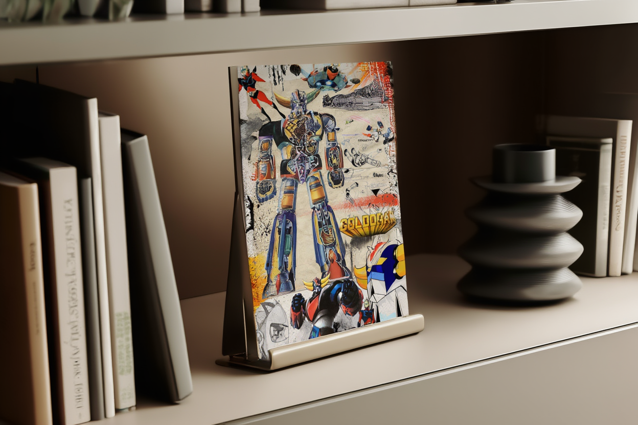 L’œuvre est réalisée par impression numérique haute qualité sur plaque de Dibond (aluminium), un support reconnu pour sa rigidité, sa légèreté et son excellente durabilité. Ce matériau garantit des couleurs intenses, une grande précision des détails et une tenue parfaite dans le temps.