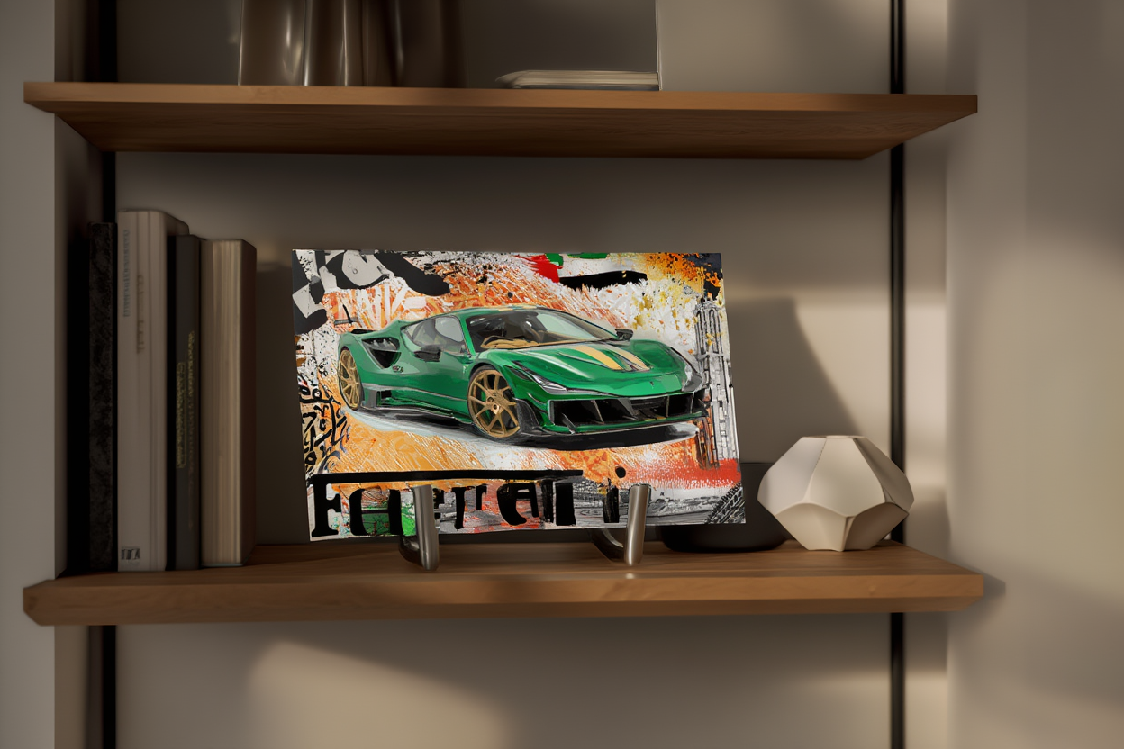 L’œuvre est réalisée par impression numérique haute qualité sur plaque de Dibond (aluminium), un support reconnu pour sa rigidité, sa légèreté et son excellente durabilité. Ce matériau garantit des couleurs intenses, une grande précision des détails et une tenue parfaite dans le temps.