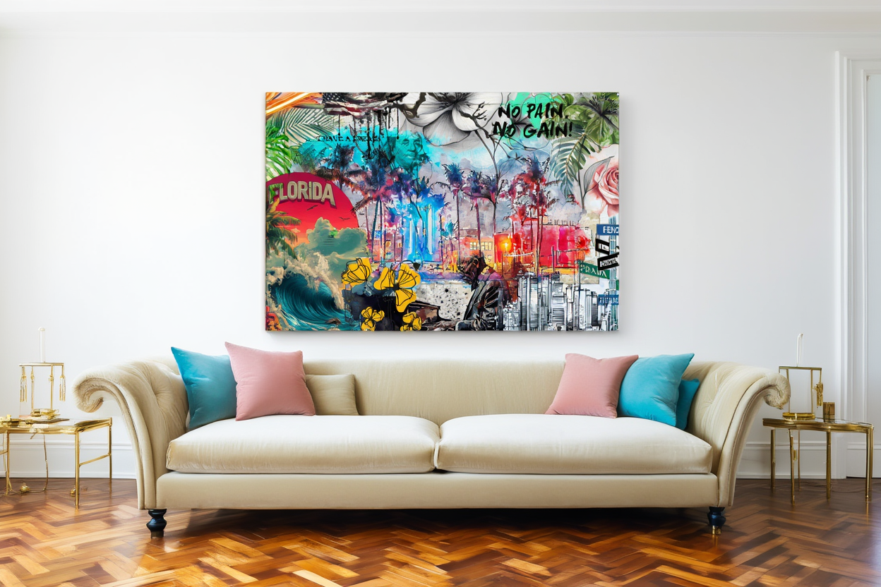 L’œuvre est réalisée par impression numérique haute qualité sur plaque de Dibond (aluminium), un support reconnu pour sa rigidité, sa légèreté et son excellente durabilité. Ce matériau garantit des couleurs intenses, une grande précision des détails et une tenue parfaite dans le temps.