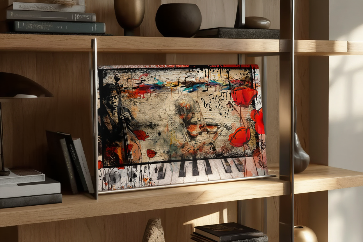 L’œuvre est réalisée par impression numérique haute qualité sur plaque de Dibond (aluminium), un support reconnu pour sa rigidité, sa légèreté et son excellente durabilité. Ce matériau garantit des couleurs intenses, une grande précision des détails et une tenue parfaite dans le temps.