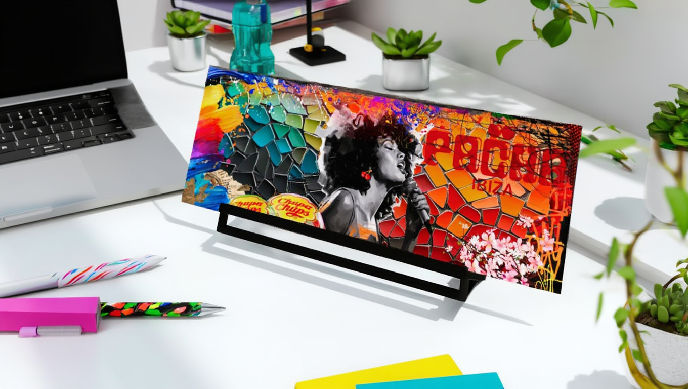 L’œuvre est réalisée par impression numérique haute qualité sur plaque de Dibond (aluminium), un support reconnu pour sa rigidité, sa légèreté et son excellente durabilité. Ce matériau garantit des couleurs intenses, une grande précision des détails et une tenue parfaite dans le temps.
