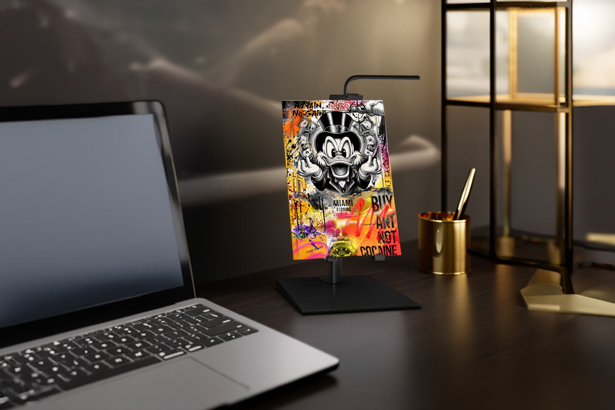 L’œuvre est réalisée par impression numérique haute qualité sur plaque de Dibond (aluminium), un support reconnu pour sa rigidité, sa légèreté et son excellente durabilité. Ce matériau garantit des couleurs intenses, une grande précision des détails et une tenue parfaite dans le temps.