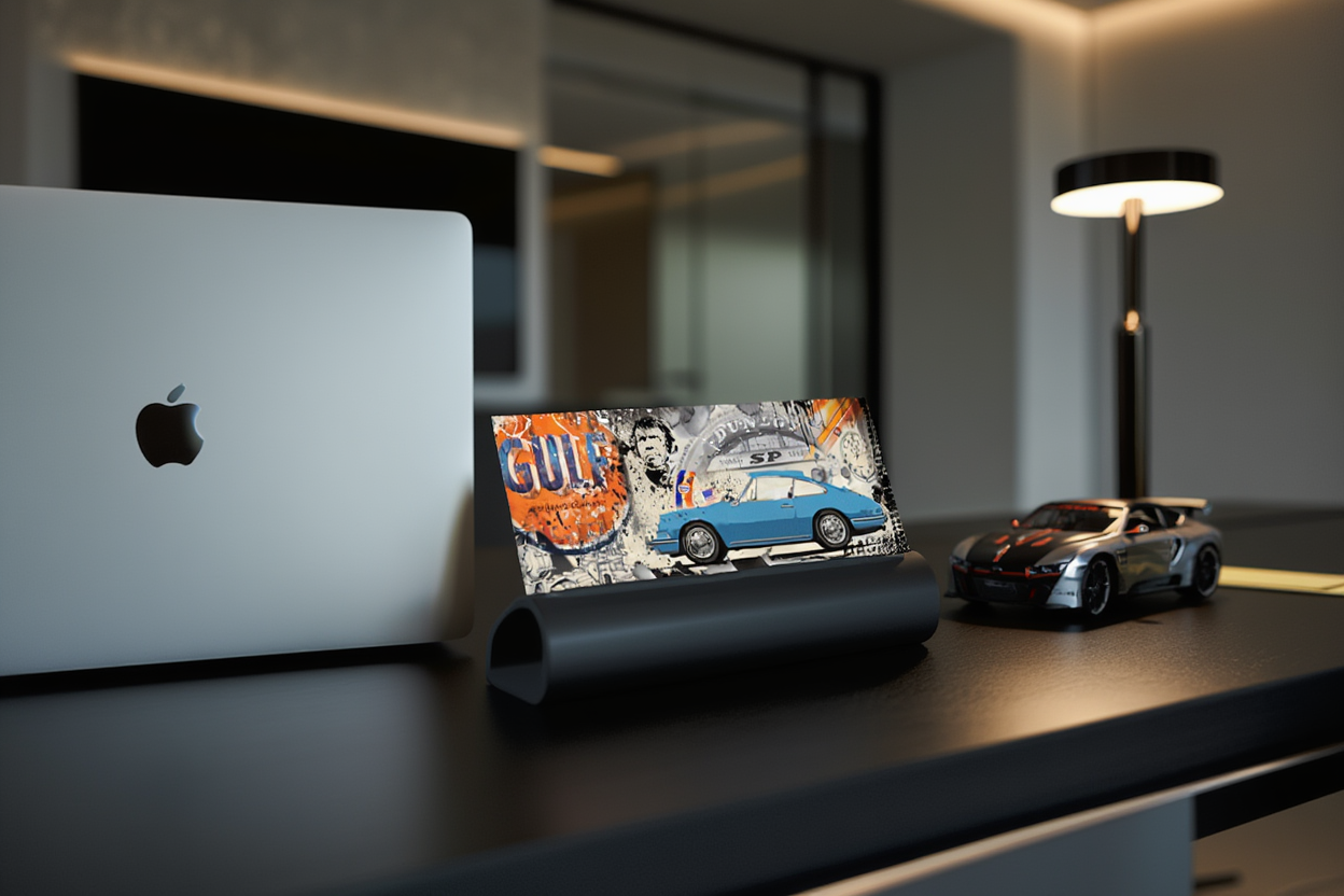 L’œuvre est réalisée par impression numérique haute qualité sur plaque de Dibond (aluminium), un support reconnu pour sa rigidité, sa légèreté et son excellente durabilité. Ce matériau garantit des couleurs intenses, une grande précision des détails et une tenue parfaite dans le temps.