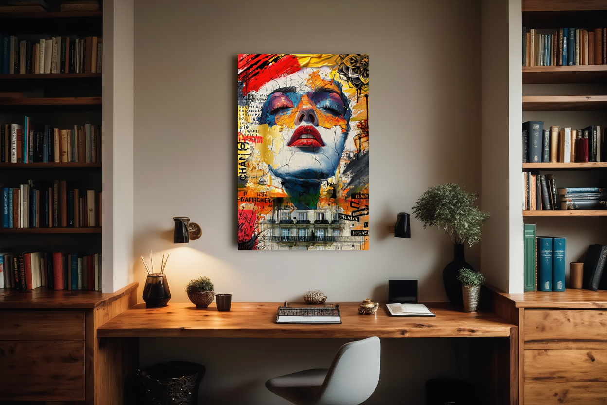 L’œuvre est réalisée par impression numérique haute qualité sur plaque de Dibond (aluminium), un support reconnu pour sa rigidité, sa légèreté et son excellente durabilité. Ce matériau garantit des couleurs intenses, une grande précision des détails et une tenue parfaite dans le temps.