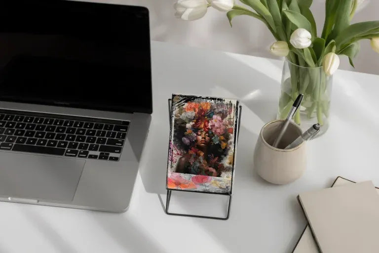Chaque création prend naissance à partir de photographies, de croquis faits à la main ou d’inspirations artistiques, puis est entièrement retravaillée sur le numérique. Ce processus permet un travail précis sur les détails, les couleurs et les textures.