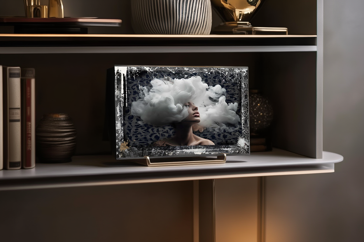 La finition numérique offre également la possibilité d’ajouter un vernis, de créer des effets de profondeur et parfois un rendu 3D, donnant aux œuvres un aspect unique et résolument contemporain.